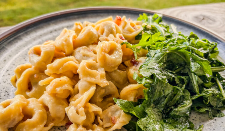 🥟 Tortellini Carbonara mit Rucola-Salat