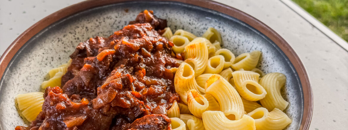 Wenn es draußen ungemütlich wird oder du einfach Lust auf ein richtig gutes, herzhaftes Gericht hast, ist dieses Rindergulasch mit Rotwein genau das Richtige. Es ist eines dieser Rezepte, das nach Zuhause schmeckt – egal ob du im Van unterwegs bist oder gerade eine Pause auf dem Campingplatz einlegst.